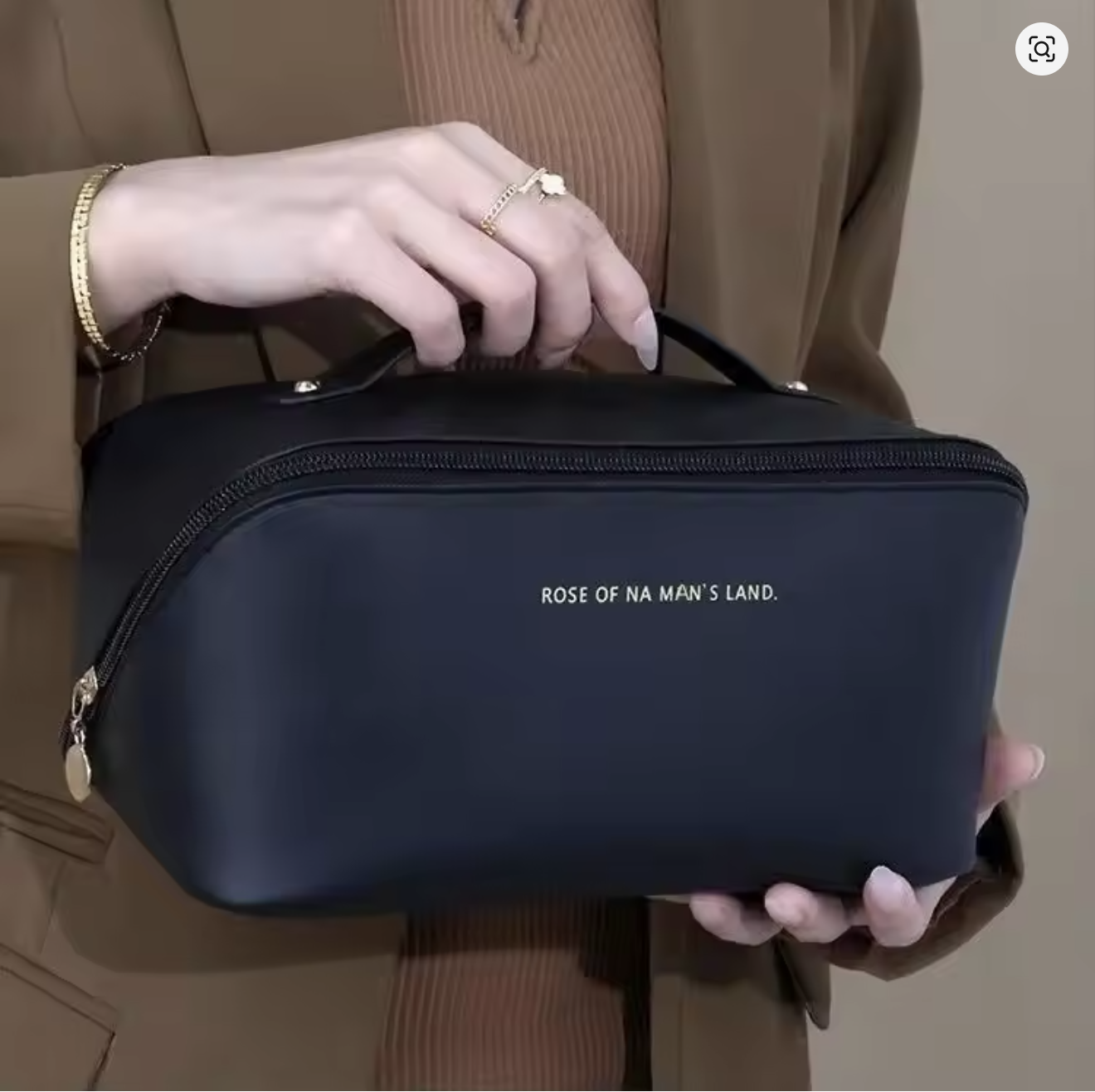 Black Makeup Organizer Bag Luxury Toiletry Cosmetic Storage Case Travel Pouch DescriptionSpacious storage :The makeup organizer has ample space to store all your cosmetics and toiletries, making it perfect for travel or everyday use.Durable material :Made of high-quality polyurethane, this makeup organizer is durable and long-lasting, ensuring that your cosmetics are safe and secure.Fashionable design :With its solid color and fashionable design, this makeup organizer is not only functional but also stylish, making it a great addition to any collection.Easy to clean :The makeup organizer is easy to clean, ensuring that it stays hygienic and looking great for longer.Specifications:Color: blackClosure Type: ZipperMaterial: PU leather