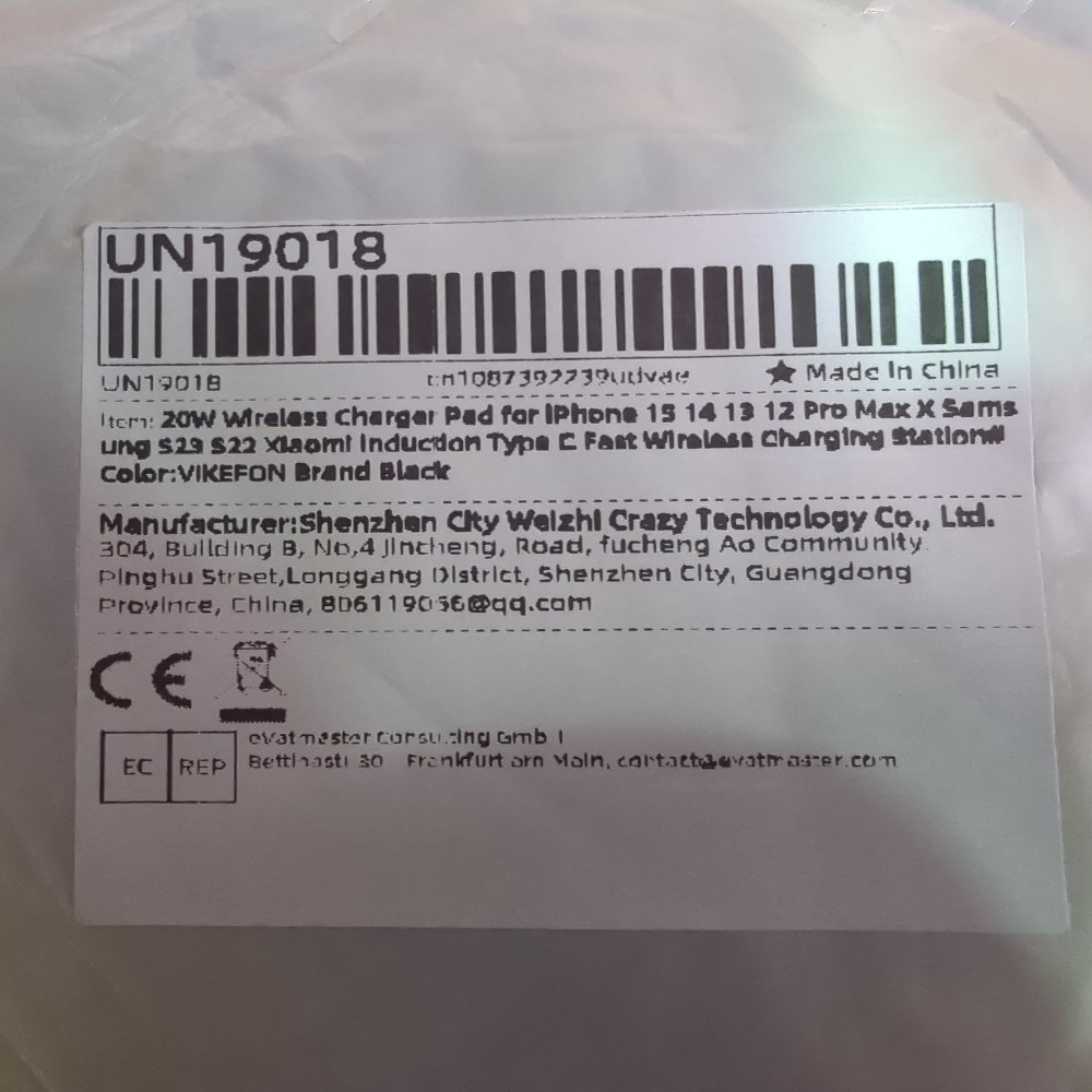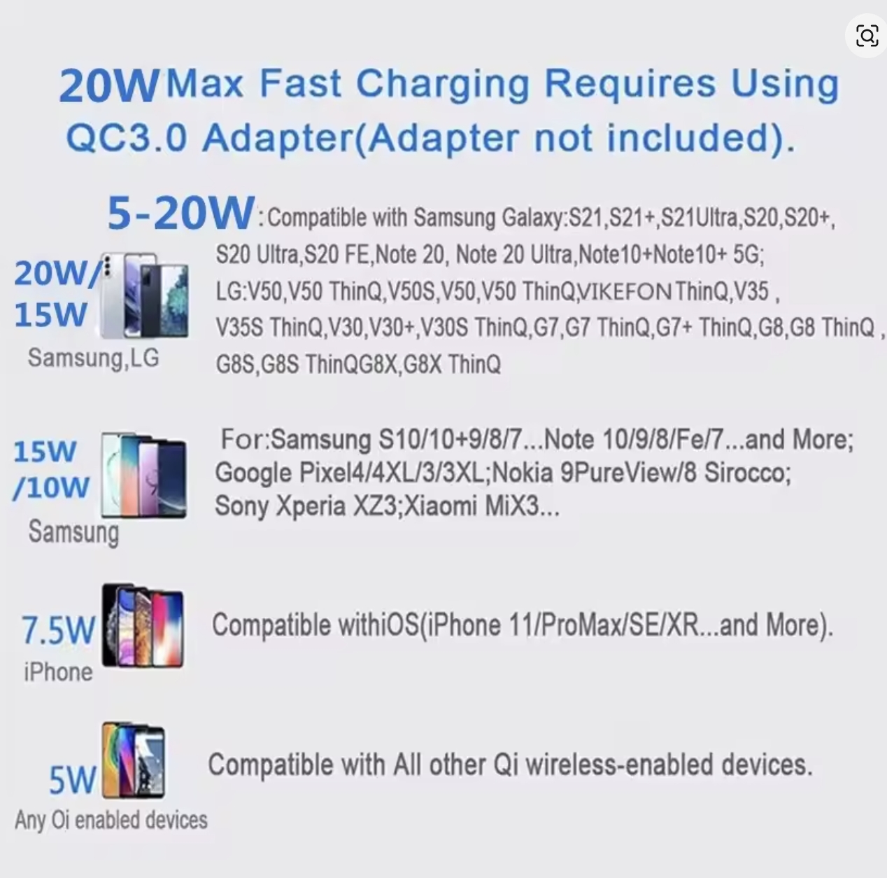Black VIKEFON 20W Fast Wireless Charger Pad for iPhone Samsung Xiaomi Type-C