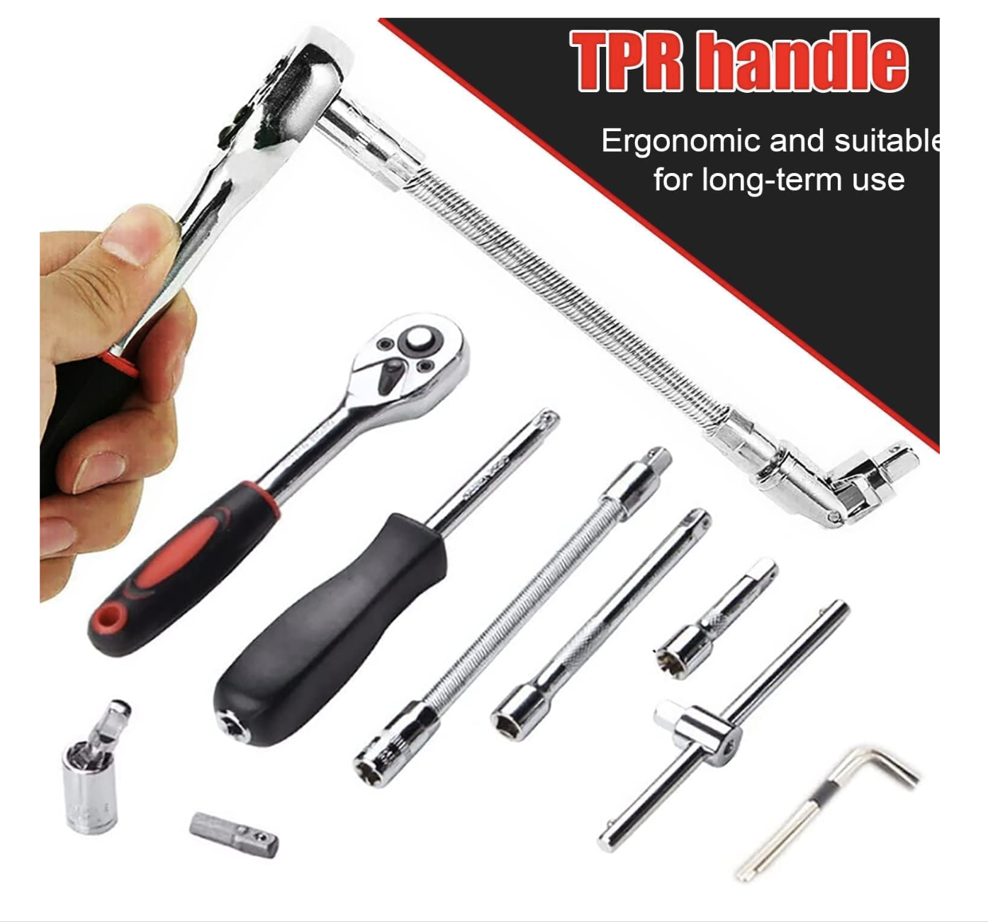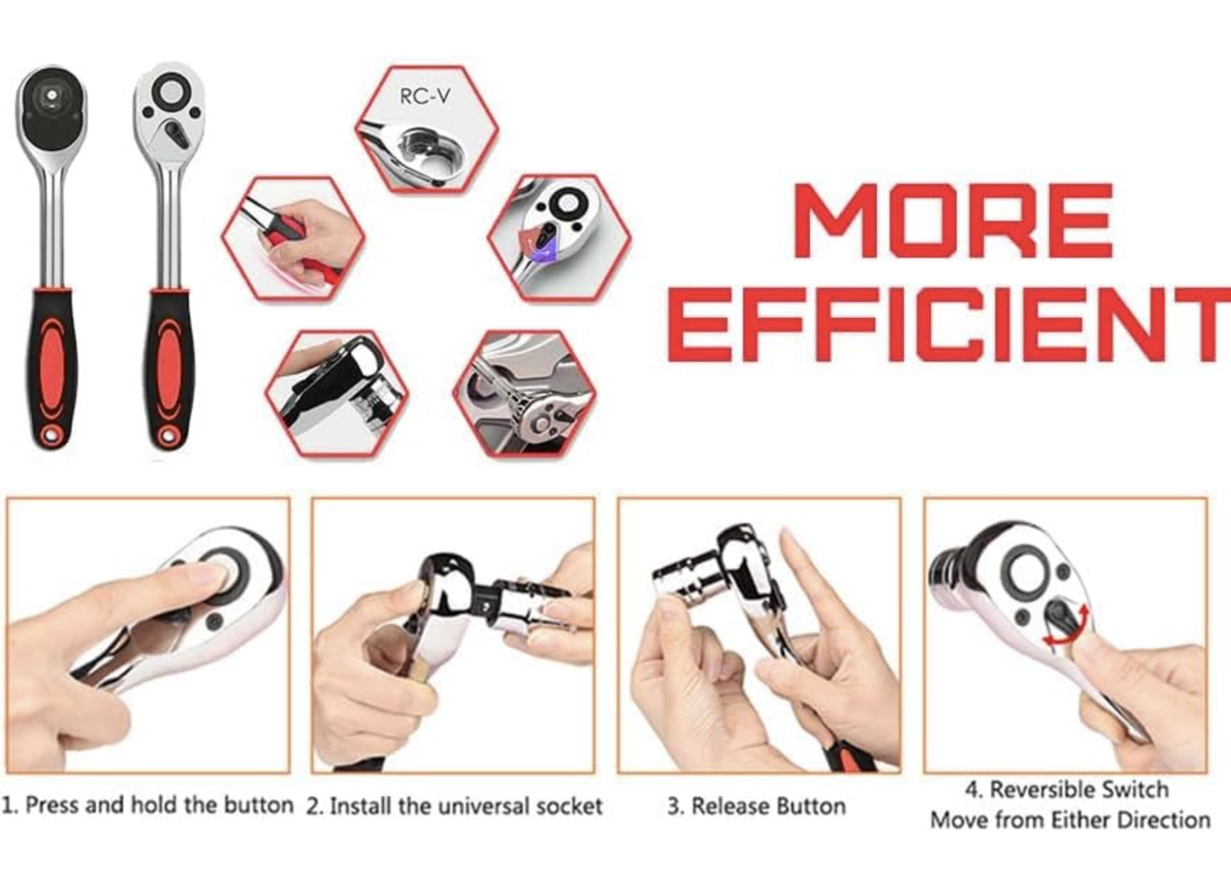 HUBTURE 46-in-1 1/4" Ratchet Socket Wrench Spanner Tool Kit Chrome Vanadium Set