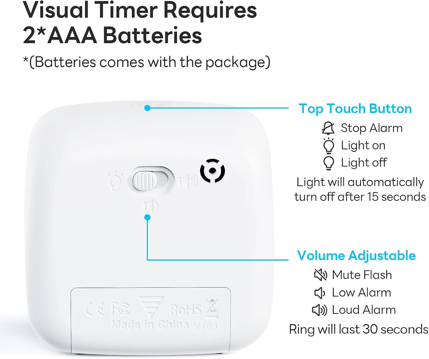 Time Management Tool: The 60-minute visual timer assists in improving concentration and activity productivity. You can finish tasks efficiently. Farewell to procrastination and developing a sense of time Easy Timer: Twist the setting knob clockwise to set the countdown time you need and concentrate on your task and wait for the colored disk disappearing Visual Timer Kids and Adults: It is an awesome visual timer for toddlers, kids, adults, and seniors. The visible timer is also friendly for ADHD or autism because of its simple operability and readability No Ticking Sound: The Pomodoro timer runs silently. Make you concentrate on your task Optional Audible Alert: You don't need to worry that the ticking noise makes you disturbed. The visual timer has 3 alarm modes: mute flash, low, and loud. You can choose the various alarm modes on different occasions Wide Applications: This countdown timer can be applied on different occasions. Such as you use at home, in the kitchen, at school, in the classroom, and at work. It will be a nice kitchen timer, classroom timer, work timer and study timer