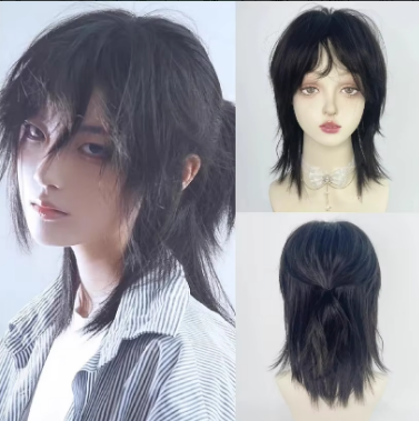 Featuring a mullet head design with bangs, this wig offers a unique style suitable for various occasions, from parties to cosplay events.