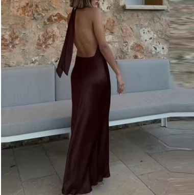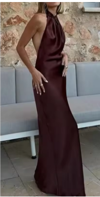 Halter Satin Long Dress Women Tied Backless Brown Midi Dress Summer Off Shoulder Party Dresses Pleated Evening DressColor: BrownSize: S High-concerned chemical: None Craft of Weaving: Tatting Material Composition: synthetic fiber Release Date: Summer 2024 Closure Type: Zipper Profile Type: A Fabric Type: POLYESTER Type: Neck-mounted Age: Middle Age Model Number: Halter satin dress Season: Summer Neckline: Halter Waistline: Natural Sleeve Style: Off The Shoulder Dresses Length: Mid-Calf Decoration: Backless Sleeve Length(cm): Sleeveless Pattern Type: Solid Silhouette: Straight Style: High Street Material: POLYESTER Gender: Women Elasticity: Slight Stretch Fit Type: Regular Fit