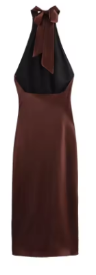 Free shipping Women’s Satin Halter Midi Dress-Backless,Off-Shoulder,Pleated Color:Brown Size:S