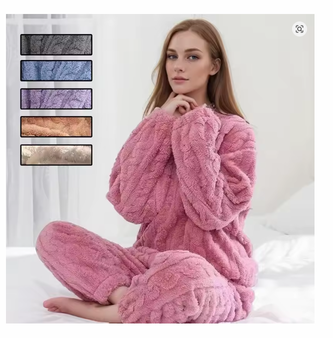Thickened Warm Autumn And Winter Flannel Pajamas Women Long-Sleeved Solid Striped Homewear Black Plus Size School Loungewear size: Average colour: pink
