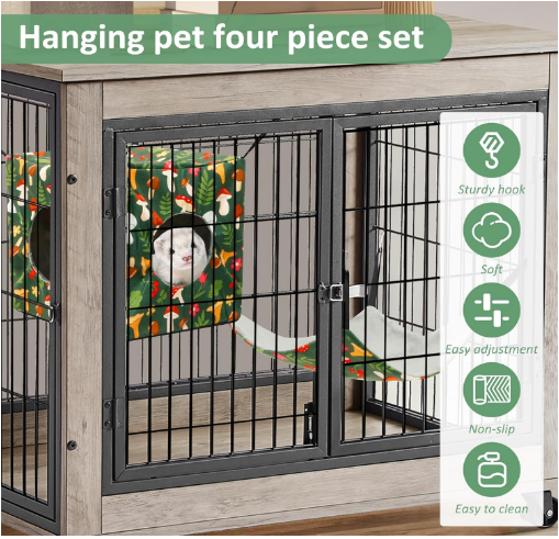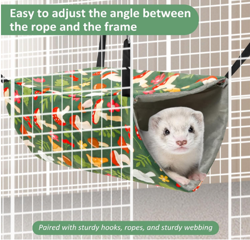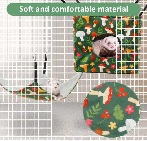 4Pcs Hamster Hammock Set Polyester Ferret Rat Hammock Set Soft Comfortable Hanging Guinea Pig Hideout Bed Small Pet SuppliesProduct Details-Product name: Hamster Hammock-Material: Polyester-Style: Green Mushroom Style-Dimensions: Rope length 11.5 cm / 4.53 inch-Square hanging nest: 28 x 28 cm / 11 x 11 inch, opening diameter 9 cm / 3.54 inch;-Square pad: 34 x 34 cm / 13.39 x 13.39 inch;-Large opening hammock: 26x34cm/10.24x13.39 inch;-Pet access nest: 19x34x13cm/7.48x13.39x5.12 inch-Color: Green-4PcsParts List1 x Square Hanging Nest1 x Square Pad1 x Large Opening Hammock1 x Pet Access Nest