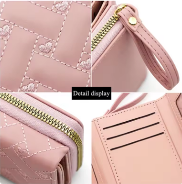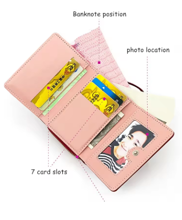 Wallets For Women Fashion PU Leather Embroidered Love Tri-fold Small Wallet Kawaii Cute Card Holder Multi-card Slot Coin PursesProduct Details-Material: PU -Color: Pink-Size: The length, width and height are about 11*8*3.5cm, the error is 1cm -Conversion: 1inch=2.54cm, 1cm=0.393inches-Closure Type: Zipper -Package: 1pc