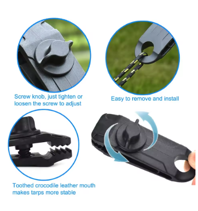 10PC Awning Clamp Tarp Clips Heavy Duty Lock Grip Tent Fasteners Clips Pool Awning Bungee Cord Car Tighten for Outdoor CampingProduct Details-Color: 10 PCS Black