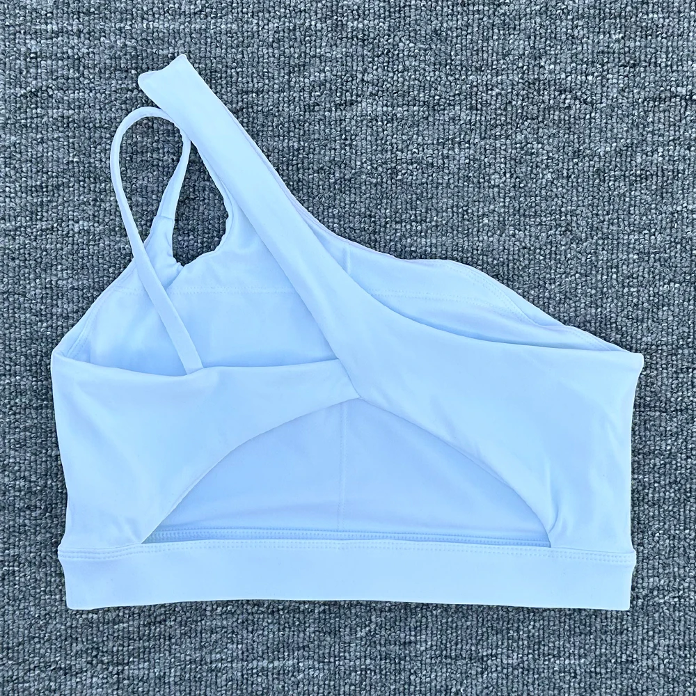 White L Women Shockproof Sport Bra with Oblique Straps Gym Yoga Fitness Top