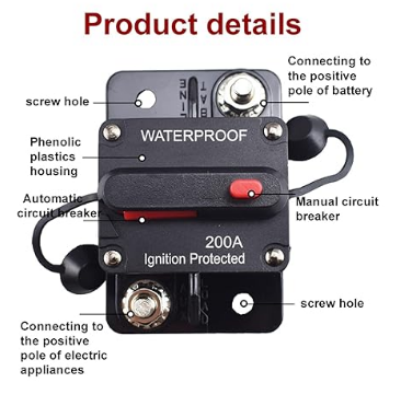Circuit Breaker Fuse Reset 30A 40A 50A 60A 70A 80A 100A 120A 150A 200A 250A 300A AMP Waterproof Boat Car Circuit BreakerRated Current:40A