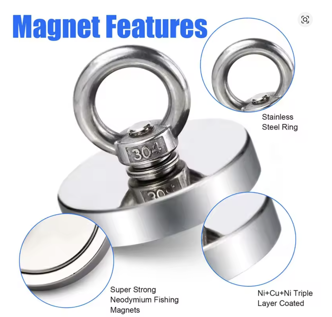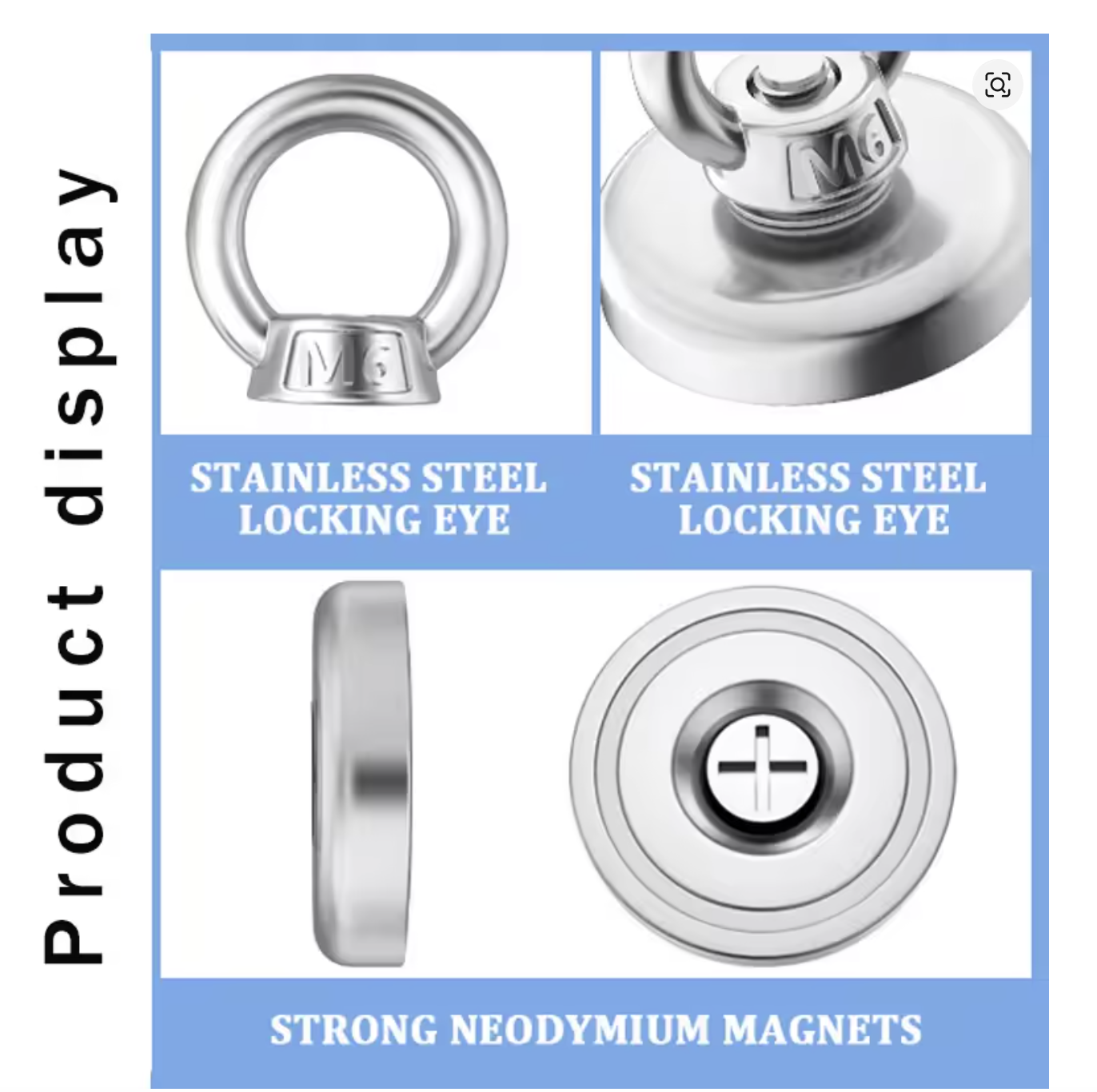 D16 5kg Neodymium Fishing Magnet Heavy Duty Rare Earth with Eyebolt