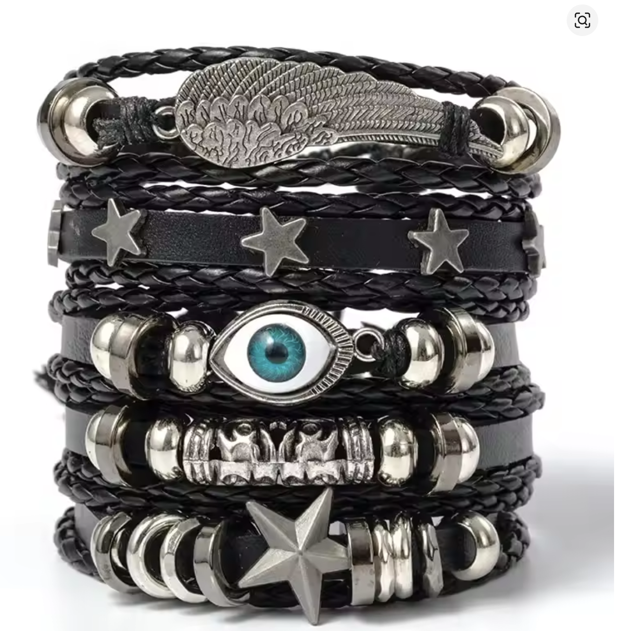 5pcs Evil Eye Wing Star DIY Braided Punk Style Bracelet Set PU Leather
