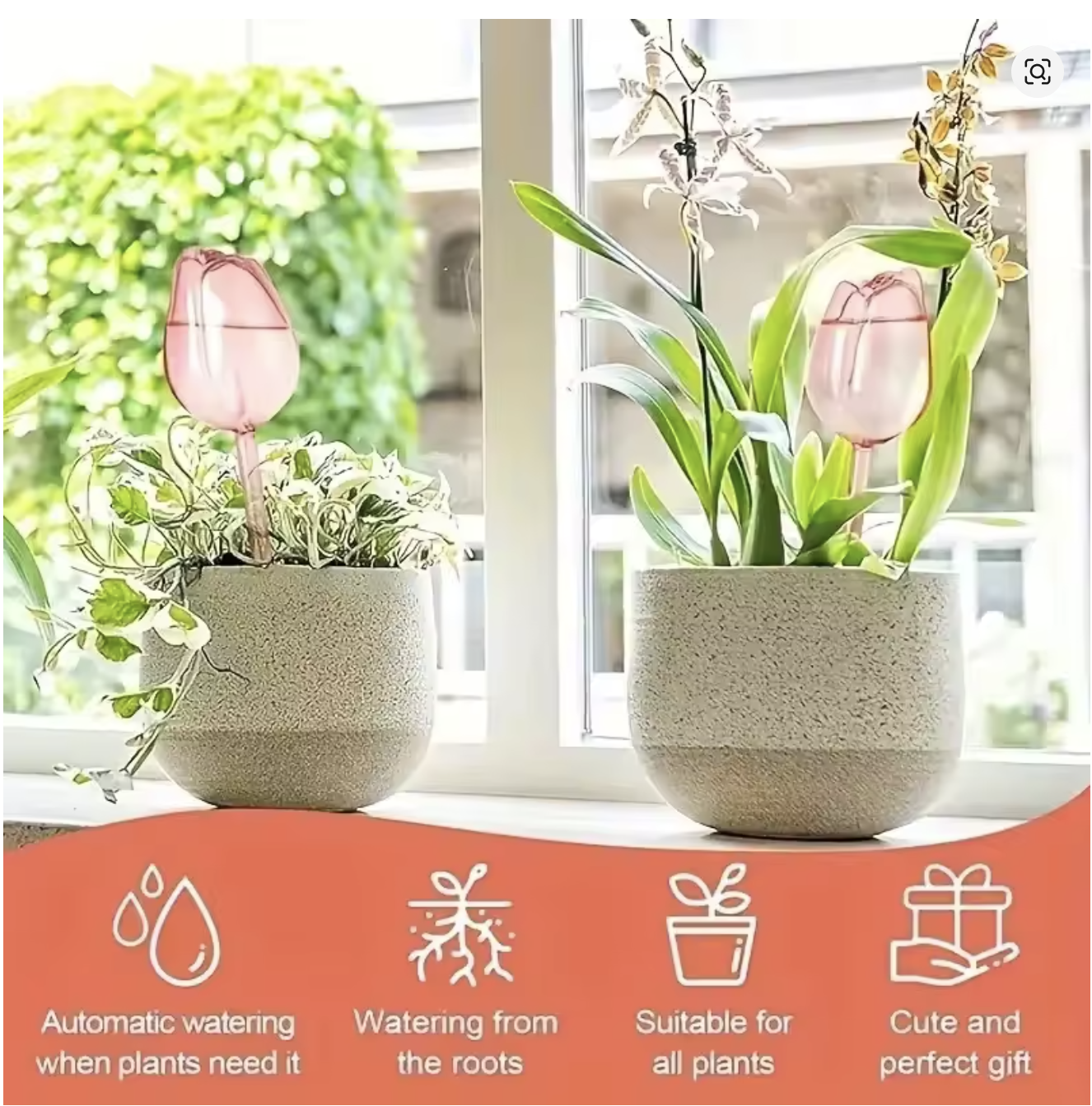 4pcs Pink Tulip Plant Watering Balls Automatic Indoor Outdoor Drippers