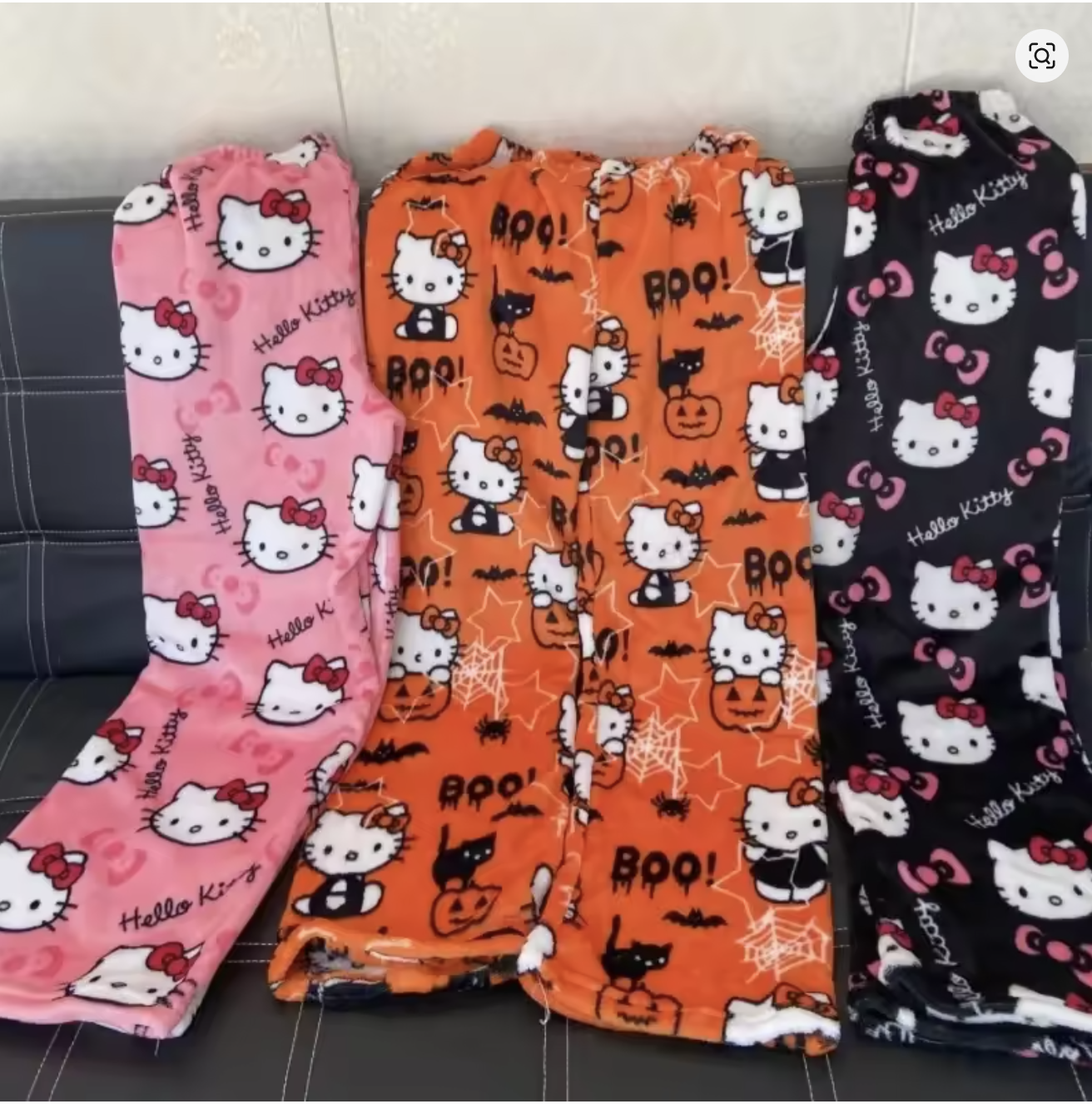 DD 2024 Sanrio Hello Kitty Flannel Pajama Pants M 37–74kg, Kawaii Home Wear