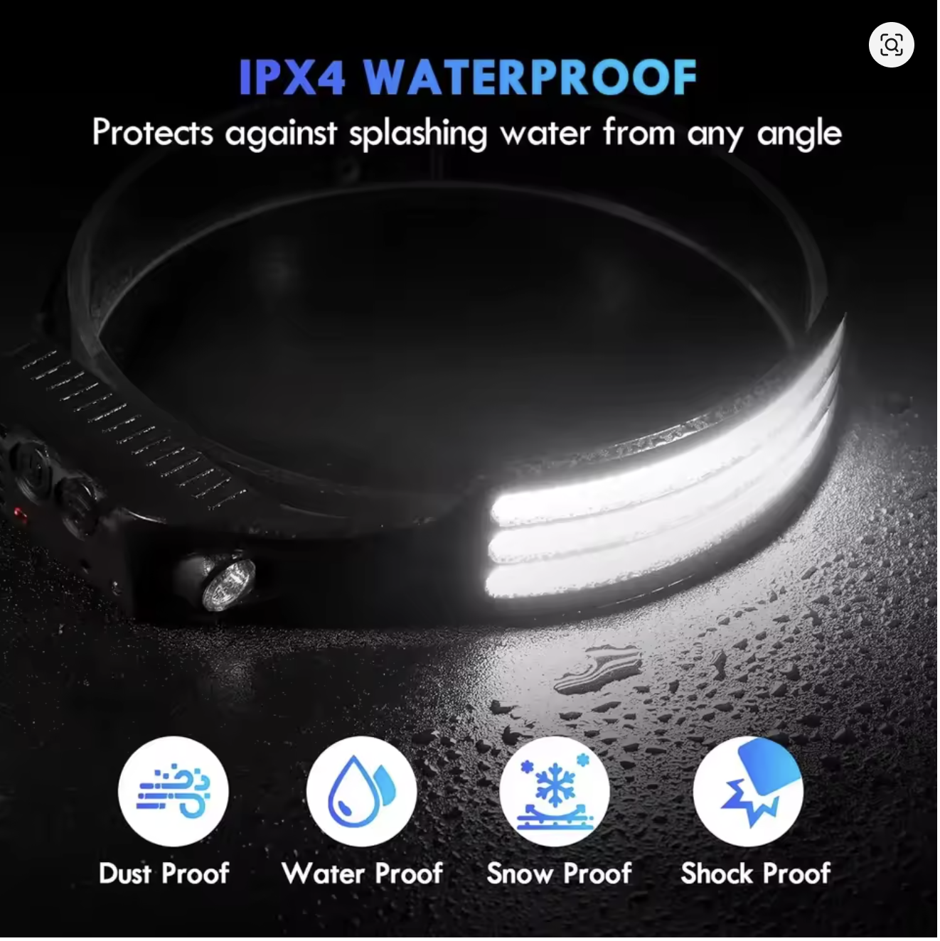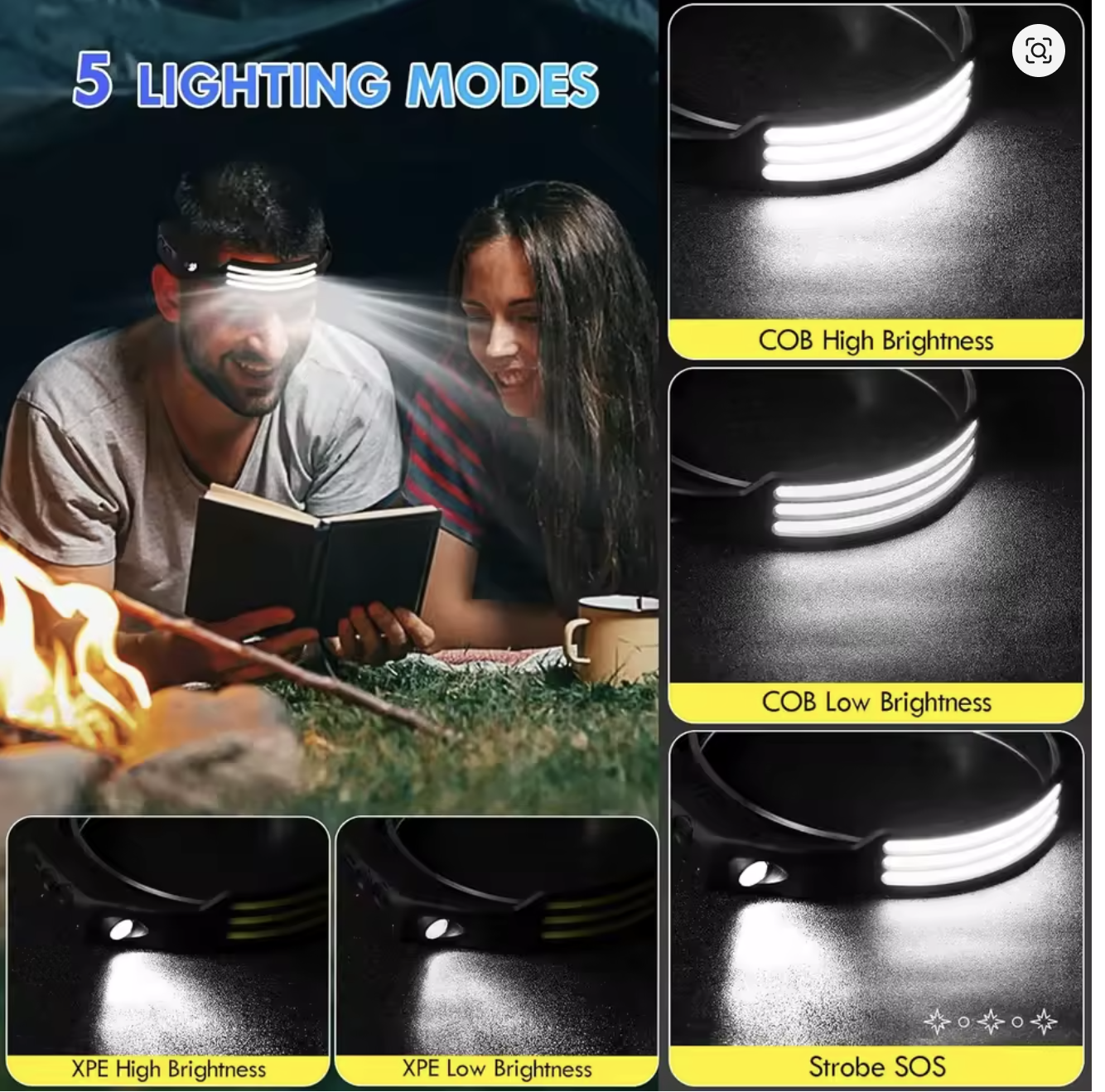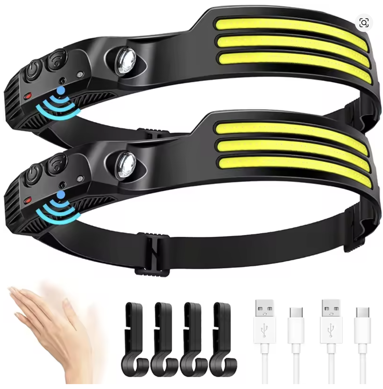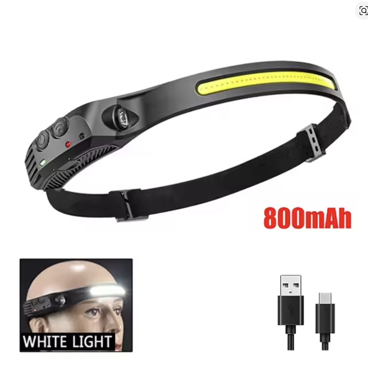 1-White COB LED Induction Headlamp USB Rechargeable 800mAh Battery