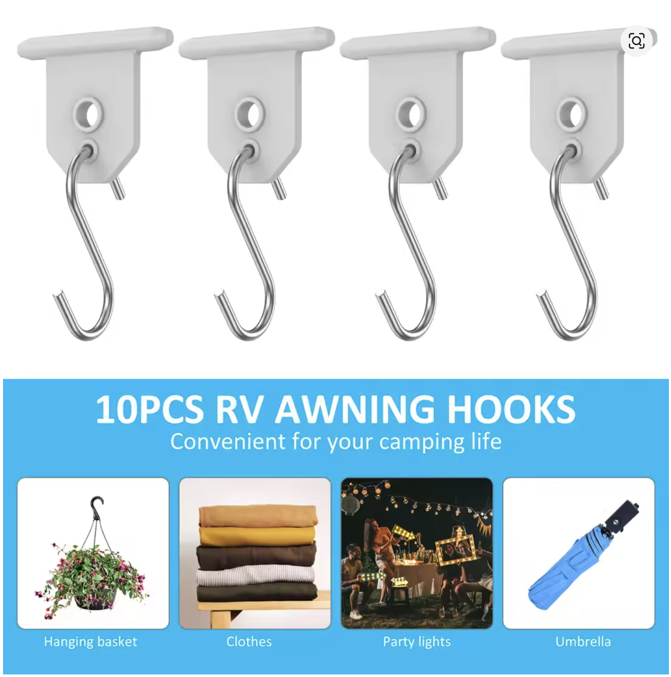 10Pcs Metal S-Shaped Awning Hooks for RV Camping and Outdoor Hanging