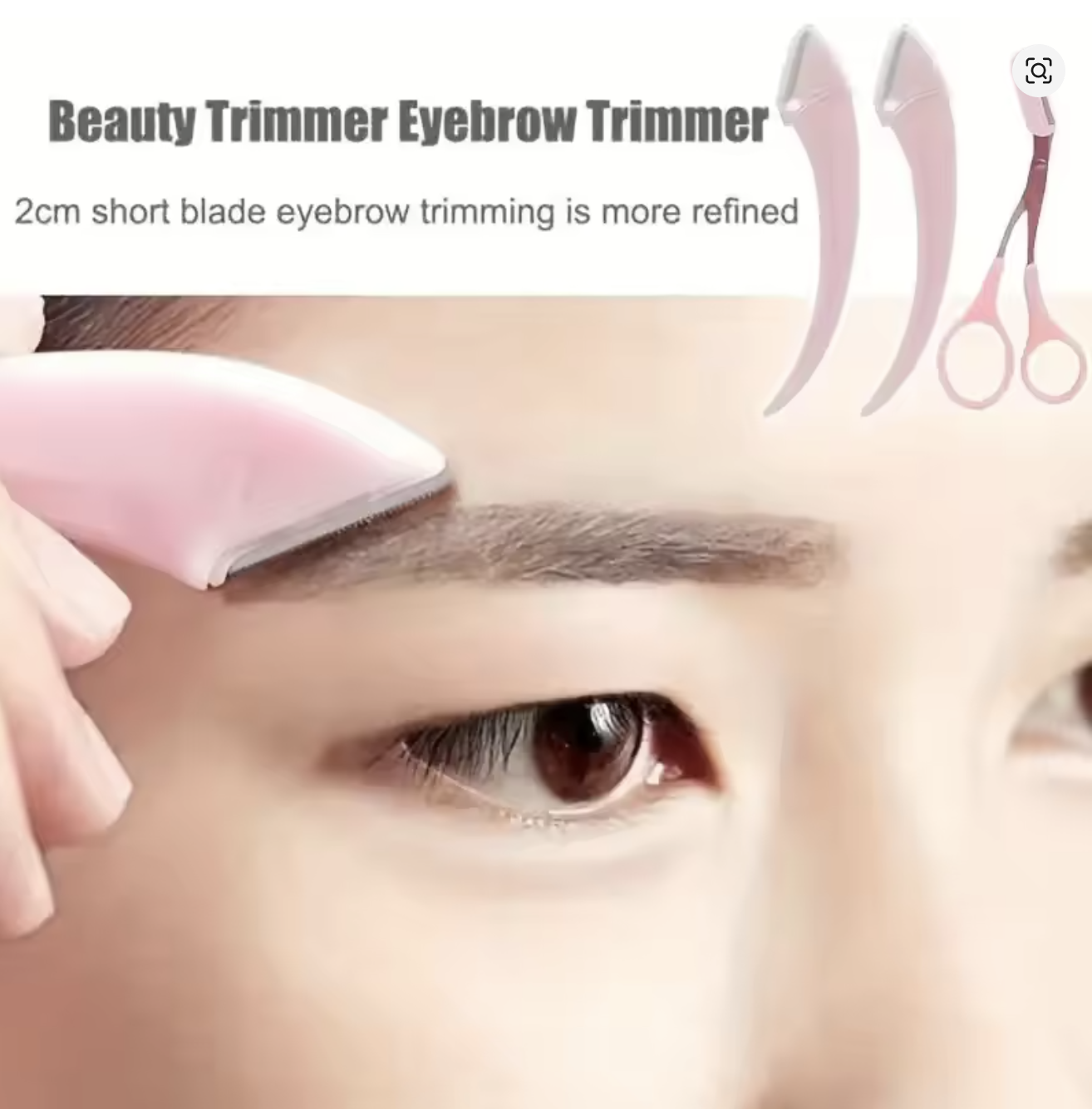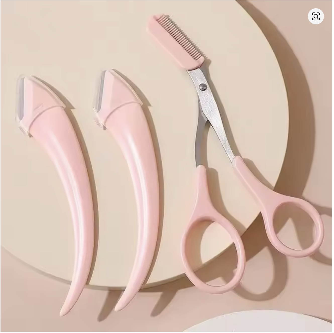 3PCS Pink Eyebrow Razor and Scissors Set with Comb for Easy Beauty Grooming