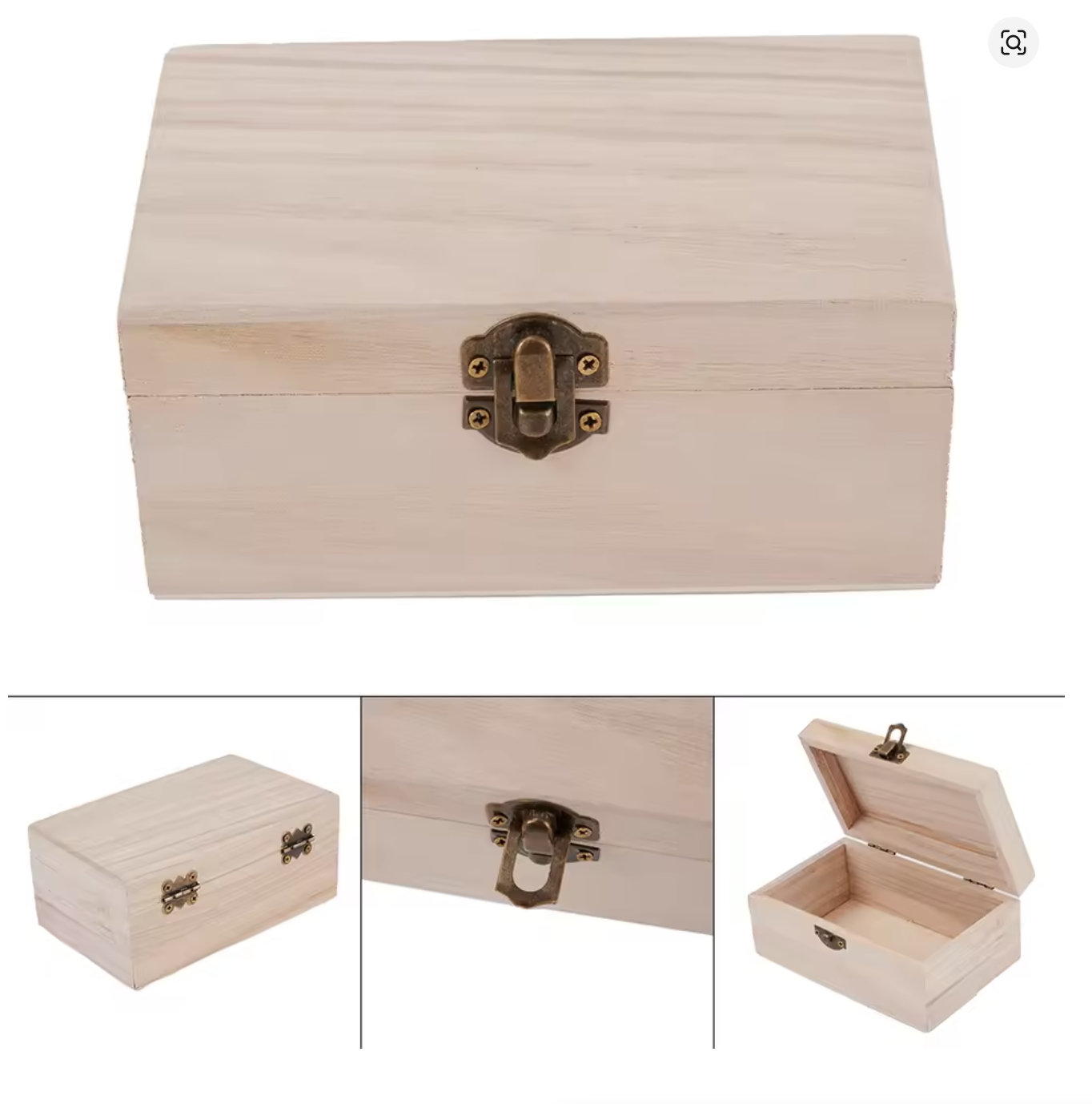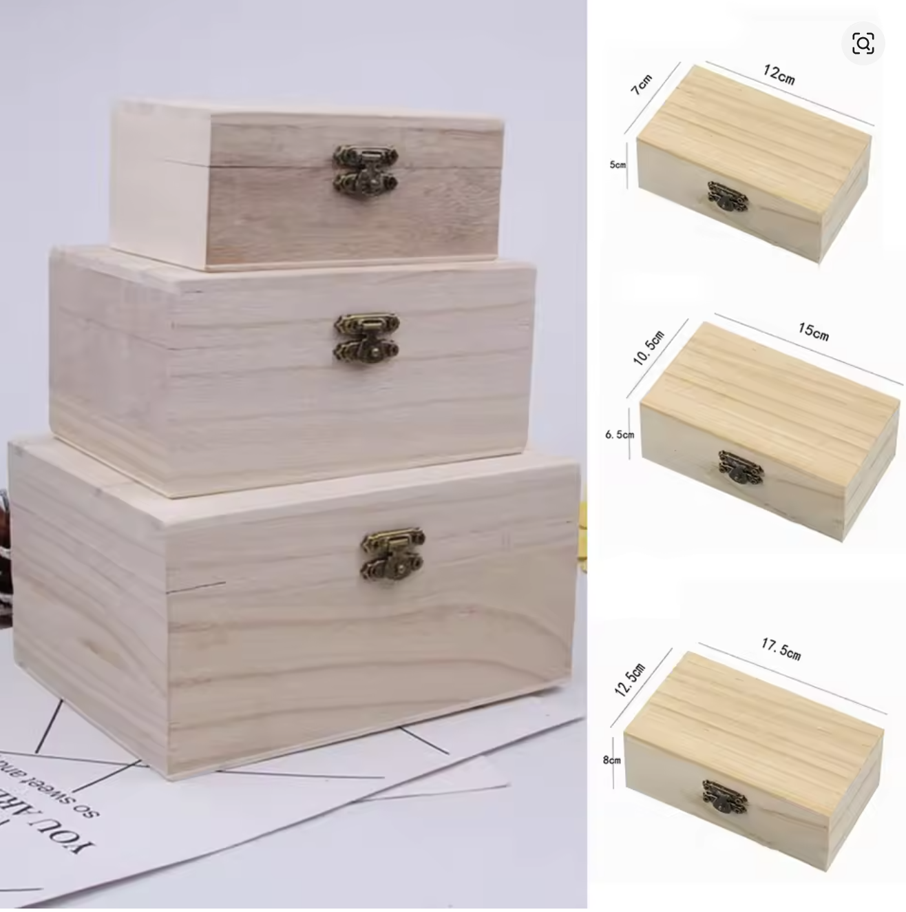 S/M/L Wooden Storage Box with Lid Square Hinged Multifunction Craft Gift Box