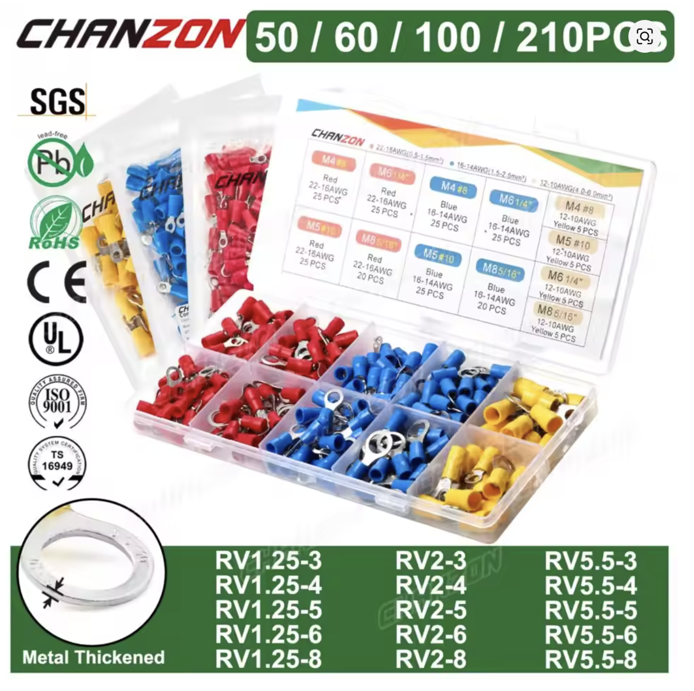 100PCS RV2-3 Electrical Ring Crimp Wire Terminals Connectors Cable Kit