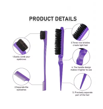 3-piece hair styling comb set with triple tear hair brush, mouse tail comb edge brush, salon hair styling tool, hair tail toolColor: SGQSJT-purple