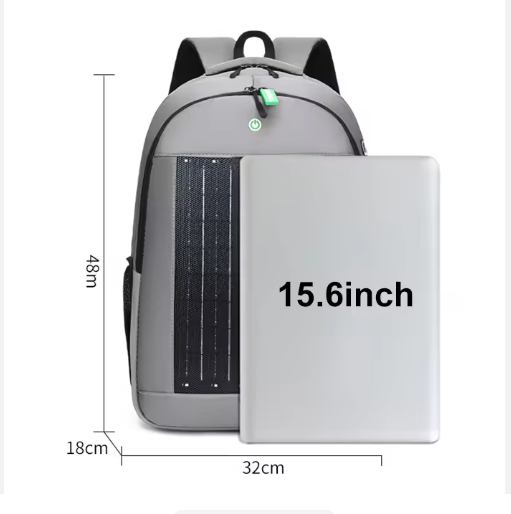 Color Black 15.6 Inch Solar Charge Backpack Emergency Charging for Mobile Phones Waterproof