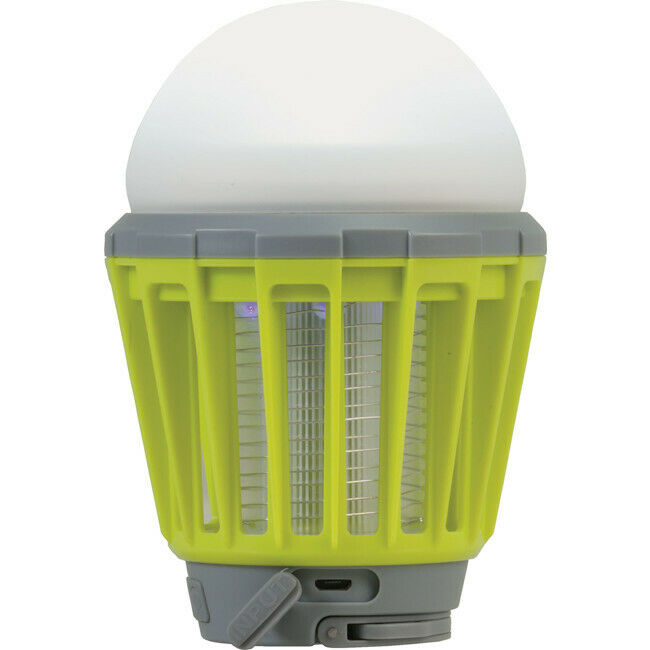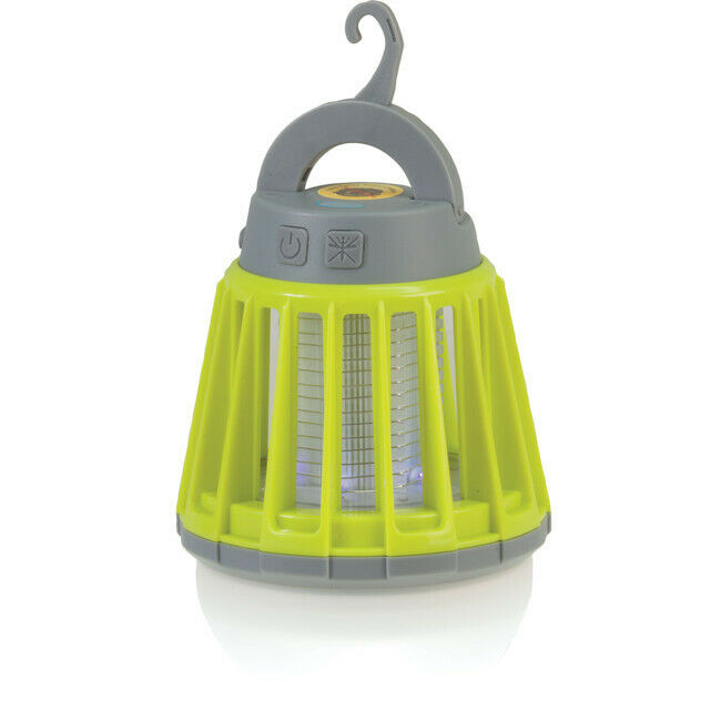 Mosquito Zapper with 180 Lumen LED Lantern This product guarantees a good night’s sleep. Thereis NOTHING more annoying than the sound of a mosquito hovering around your head in the dark at 2am in the morning.Now you can do something about it. This rechargeable electronic zapper measures 90mm in diameter and 130mm high. It weighs only 200 grams and features a nifty double hook tomount anywhere. The unit also features a soft white light (3light levels) which can be operated independently of the zapper. The zapper can work with or without the light. When on, the zapper has an unobtrusive UV style light, which attractsthe bugs. The bugs fly through the finger guard only to be confronted with a high voltage grid which either kills them instantly or stuns them. Result? No more bugs around your ears at 2am! It gets better. The unit is charged by USB! It works for about 8 hours on a charge, depending on insect kill rate andlighting level. Great for camping or at home. Specifications:• Lumens: Low: 30, Medium: 90, High: 180• Battery Life: Low Light: Up to 20 hours, Medium Light: Up to 8 hours, High Light: Up to 4 hours, UV: Up to 30 hours• UV LED: 5W• Battery: 3.7V, 2000mAh Li-Po• Input Power: 5V @ 1A• Charge Time: 3-4 hours• Dimensions: 130(H) x 90(Dia.)mm• Weight: 204g