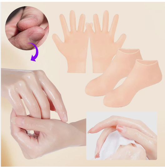 Color:Light Yellow Set Silicone moisturizing socks & gloves for dry skin care.