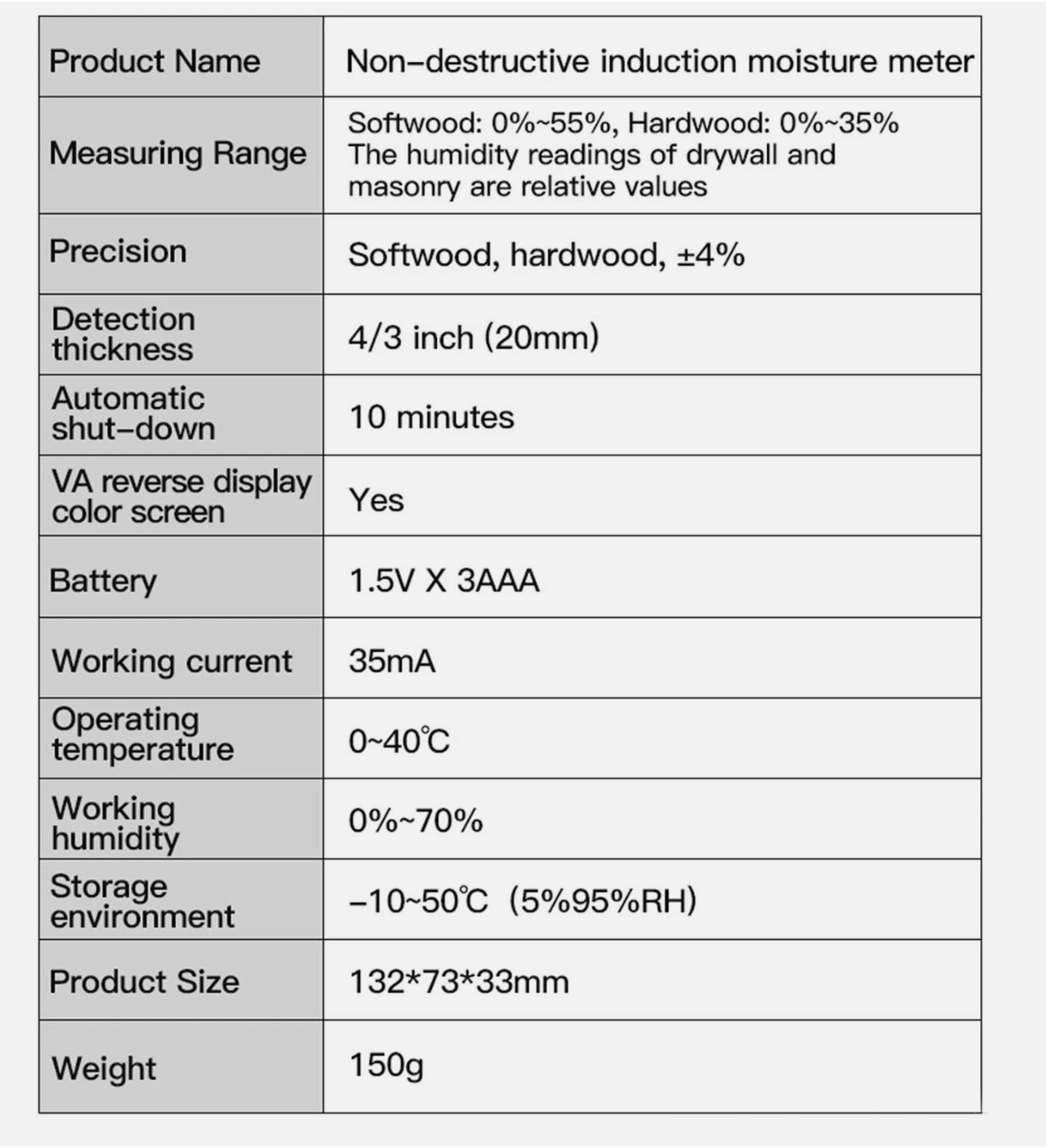 • Features: 4-in-1 measurement for wood, moisture, dampness detection