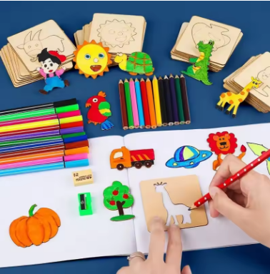 42pcs Wooden DIY Drawing Template Templates With Markes, Children's Drawing Template Drawing Tool SetColor: 42pcs