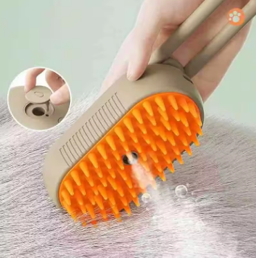 khaki Cat and Dog Pet Spray Massage Brush with Rotatable Hair Removal Comb