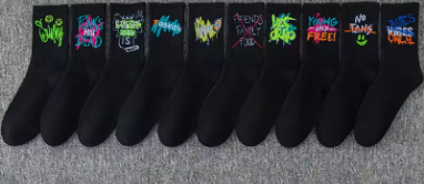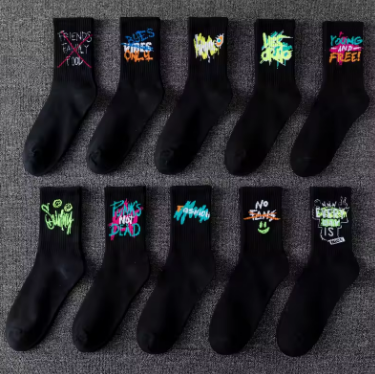 10 pairs of street style spray painted fashionable socks, men can wear black and white casual long socks all year roundColor: 10 pairs of blackSize: US 7-11