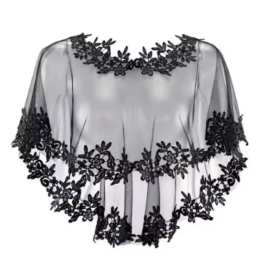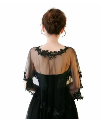 Black Women’s Lace Shawl Cape for Party Wedding and Evening Dress