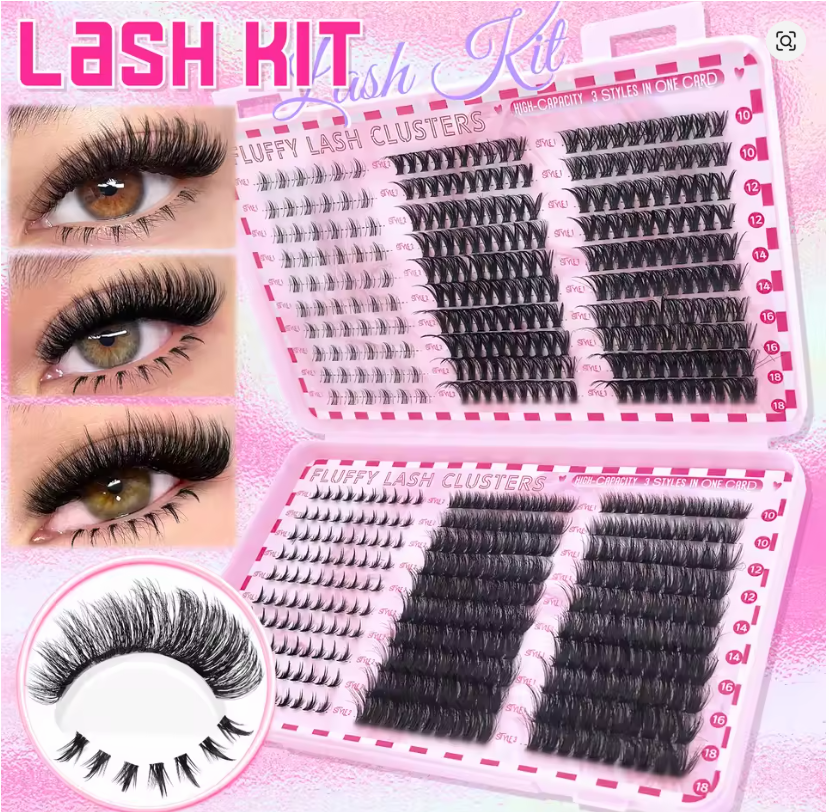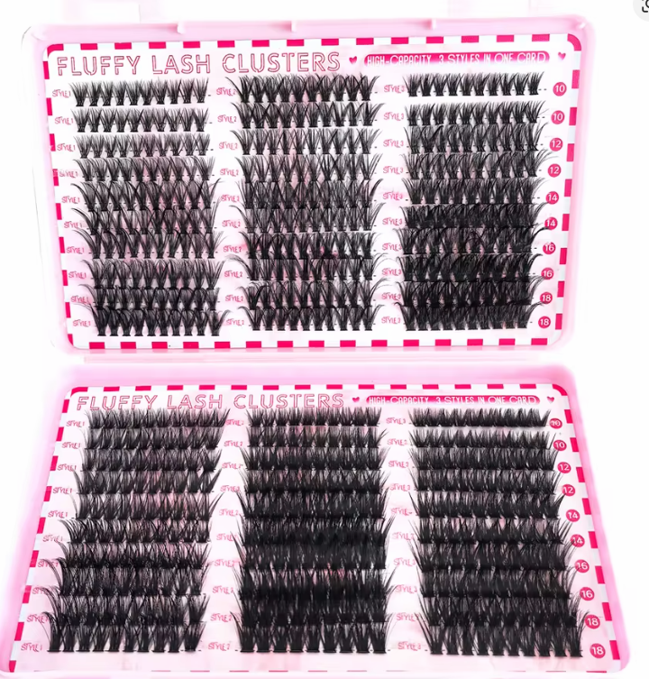 A set of individual cluster eyelashes designed for a natural, voluminous, and fluffy look. Ideal for DIY eyelash extensions, creating layered lash styles, or enhancing your everyday look.