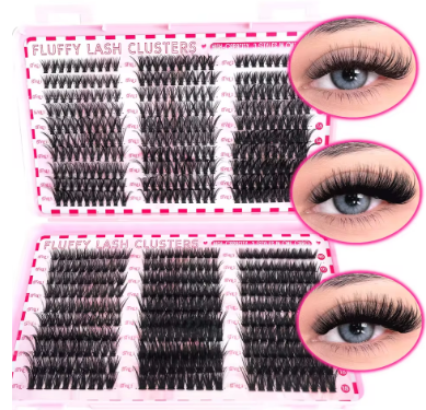 A set of individual cluster eyelashes designed for a natural, voluminous, and fluffy look. Ideal for DIY eyelash extensions or professional use to create layered and dramatic lash styles.
