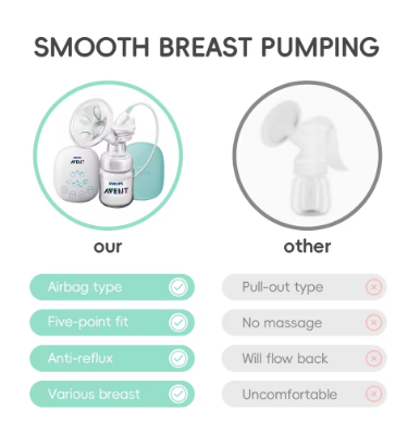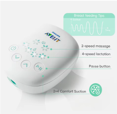 A compact and portable electric breast pump designed to mimic a baby’s natural sucking motion. Features smart massage and petal stimulation for comfortable and efficient milk expression.