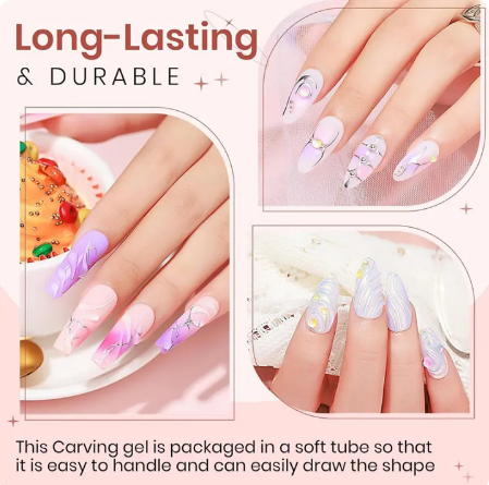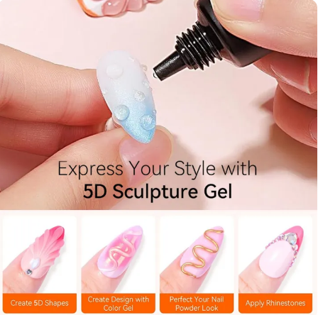 A set of 2 sculpting gels with solid mirror powder, perfect for DIY nail art. Ideal for painting, carving, and creating embossed 5D nail designs with professional-looking results.