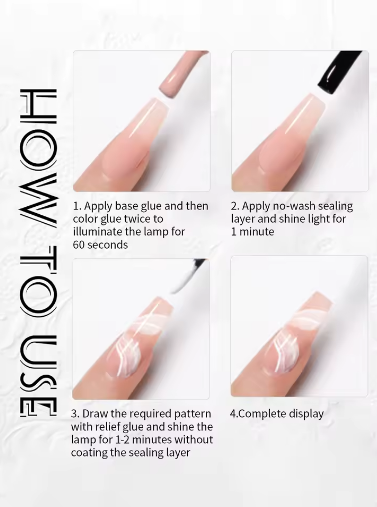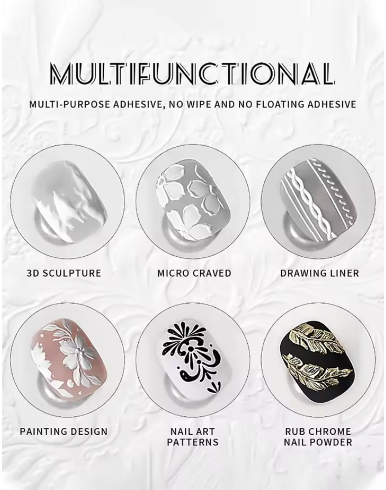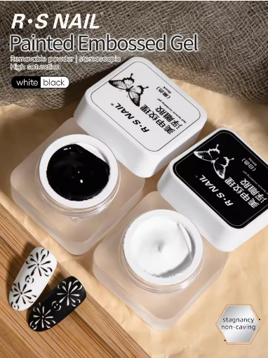 A 5g 3D embossed gel nail polish perfect for creating textured, plaster-like nail designs. Ideal for DIY nail art, painting, carving, and intricate manicure designs at home or professionally.