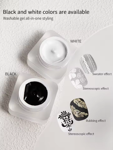 White Black Pen 5g 3D Embossed Gel Nail Polish for DIY Nail Art and Carving