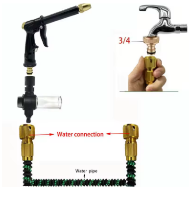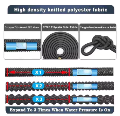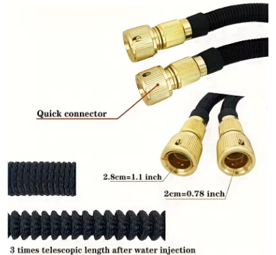 Easily water your garden or farm with this expandable high-pressure garden hose. Comes with a durable metal connector and TPE construction for long-lasting use.