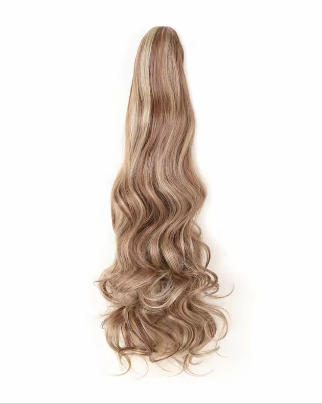 Add volume and style instantly with this synthetic curly ponytail extension. Easy-to-use claw clip design, long and wavy, perfect for women seeking a quick hair transformation.