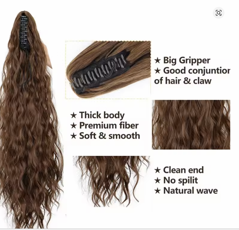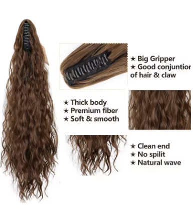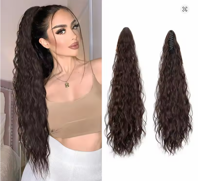 Add length and volume instantly with this 26-inch synthetic curly-wavy ponytail extension. Features a claw clip for easy attachment, perfect for daily styling.