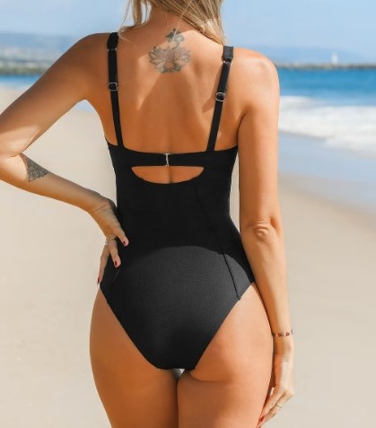 A flattering underwire one-piece swimsuit with tummy control, designed to provide support and a sleek silhouette for beach or pool days.