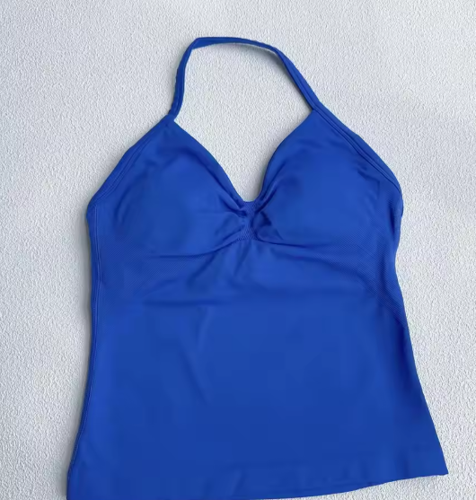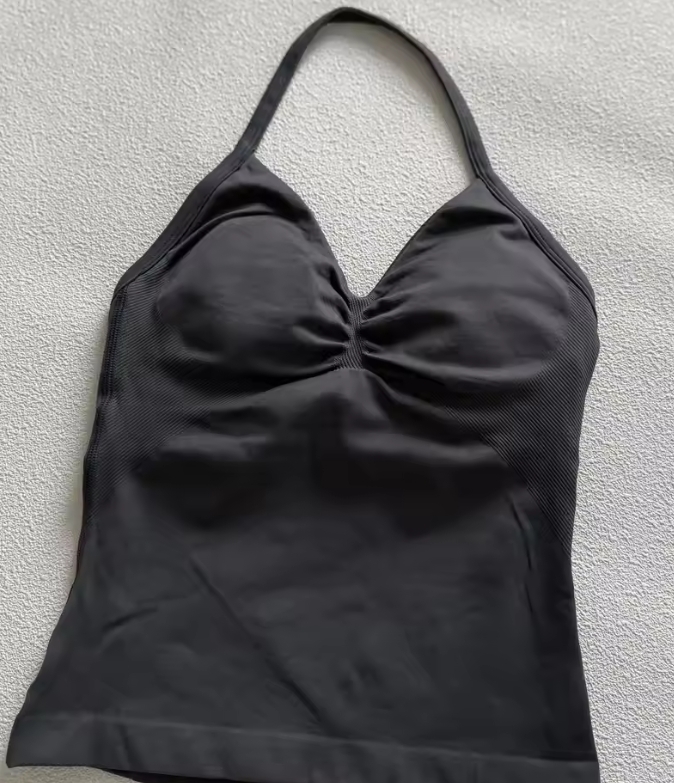 Stylish and supportive longline halter top designed for yoga, running, and gym workouts. Features padded support, strappy back details, and a comfortable fit for active wear.