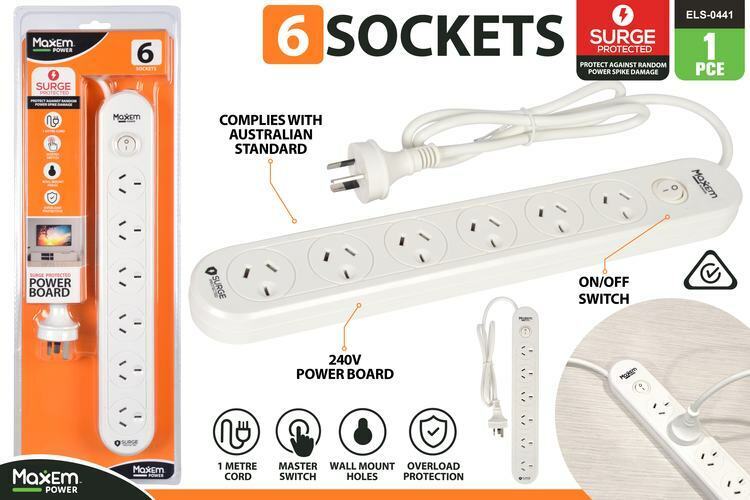 6 OUTLET SURGE PROTECTED POWER BOARD WITH INDIVIDUAL SWITCHES
