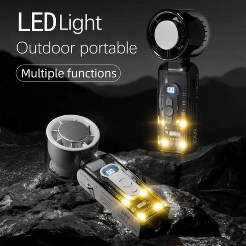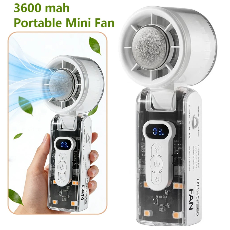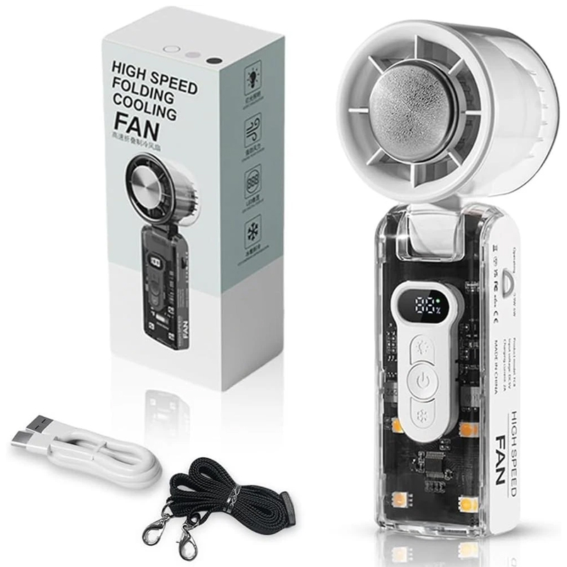 Product Description Stay cool anywhere with the High Speed Folding Portable Mini Fan, your perfect personal cooling companion for hot days. Designed with a powerful turbo airflow system and three adjustable speed settings, this compact fan delivers strong, refreshing air in seconds. Its lightweight and foldable body makes it easy to carry in your handbag, backpack, or luggage — ideal for travel, office, outdoor sports, camping, or daily commutes. With quiet operation under 40dB, you can enjoy a peaceful breeze while sleeping, working, or studying. 3600 mah Features & benefits Powerful Turbo Cooling Performance- Experience instant relief from heat with advanced turbo-boost airflow delivering strong, high-speed cooling. Ideal for summer, outdoor activities, or stuffy office spaces. Compact Design for Travel- Lightweight, pocket-size fan easily fits into bags or backpacks — perfect for travel, camping, hiking, gym, or commuting. Stay refreshed anywhere you go. Whisper-Quiet 3-Speed Operation- Adjust between three cooling levels — low, medium, and high — for customized comfort. The low-noise motor ensures quiet operation, ideal for sleeping, studying, or working. Rechargeable & Energy Efficient- Built-in high-capacity battery offers long runtime and USB-C fast charging. Eco-friendly design eliminates disposable batteries and supports sustainable energy use. Multi-Purpose & Versatile Use- Use handheld or place on a desk as a personal fan for your home, office, or bedside. Also ideal for makeup application, outdoor sports, or as a cooling gadget for travel.