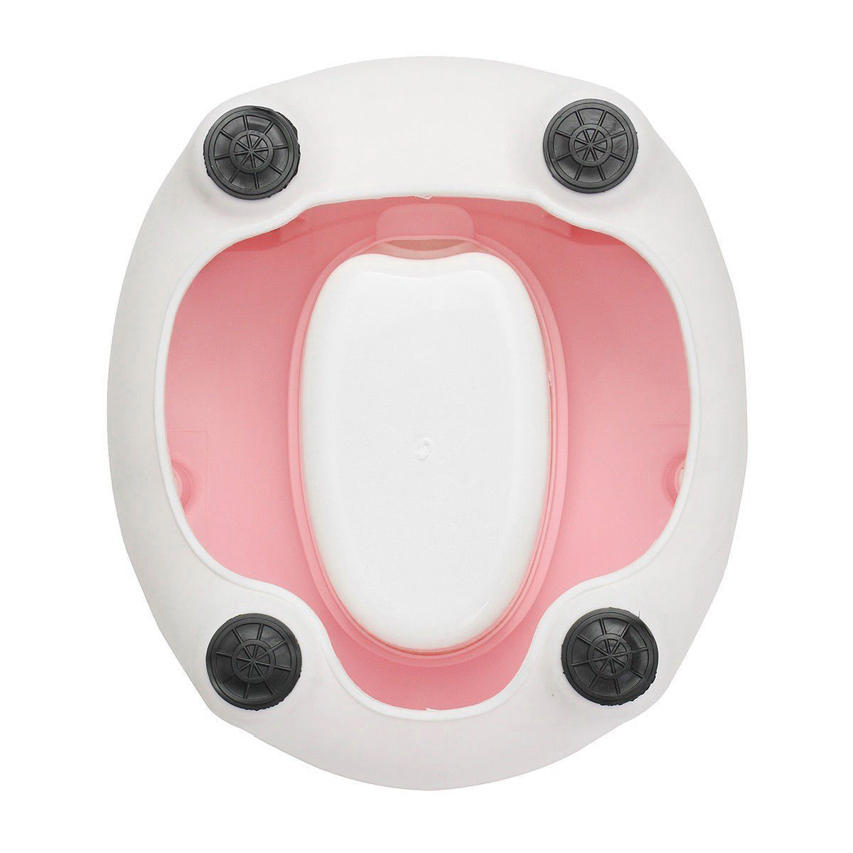 The seat potty training chair has a raised splash guard to minimise accidental spills