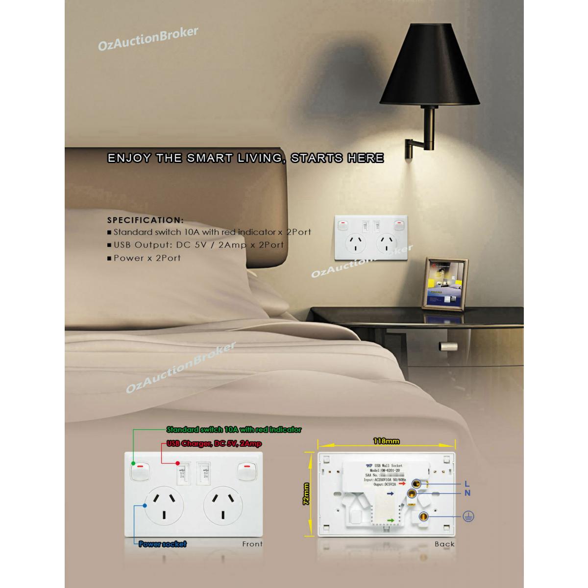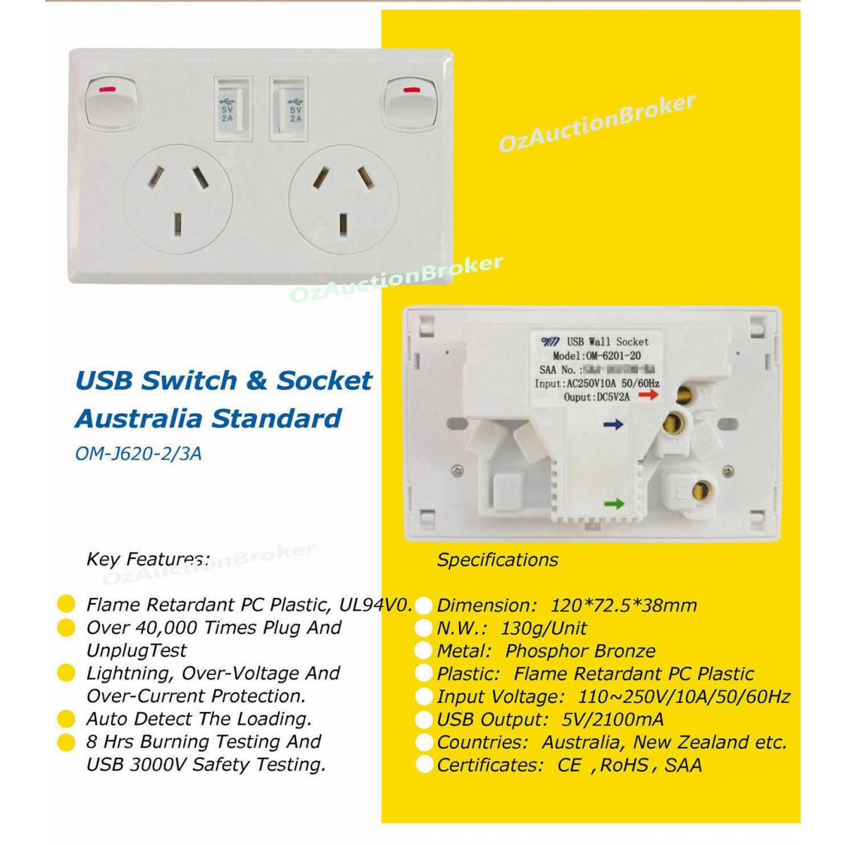 Dual USB Australian Power Point Home Wall Power Supply Socket SAA Approval