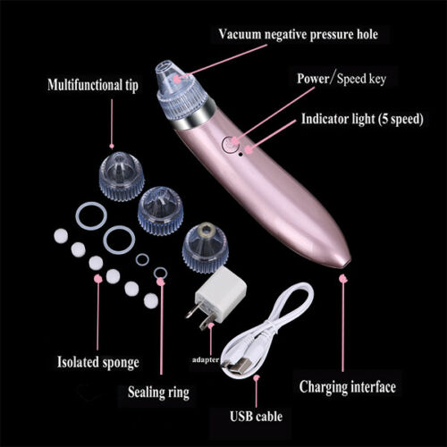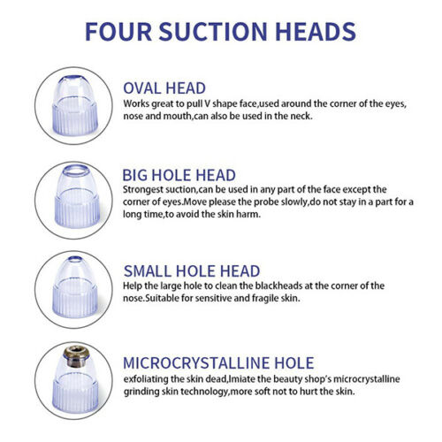 This is a functional suction machine that can absorb blackhead, acne, mites, dirt etc on the face and clean facial skin. It adopts vacuum suction technology providing a strong absorption of 53kpa power to achieve the best suction result. As it's designed to treat different skin problems, we equip with four suction heads with different functions on which is suitable for all skin types. Easy operation, useful and practical, you worth buying.