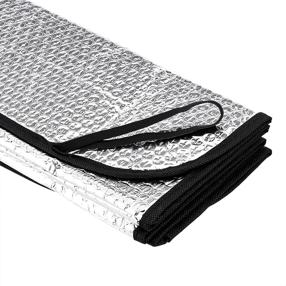 DURABLE - The Custom Autos Metallic Sun Shade Reflector is made out of double-thick insulation and is reversible. The durable construction ensures that the windshield cover will last you summer after summer to provide years of cooler and more comfortable conditions inside your vehicle.