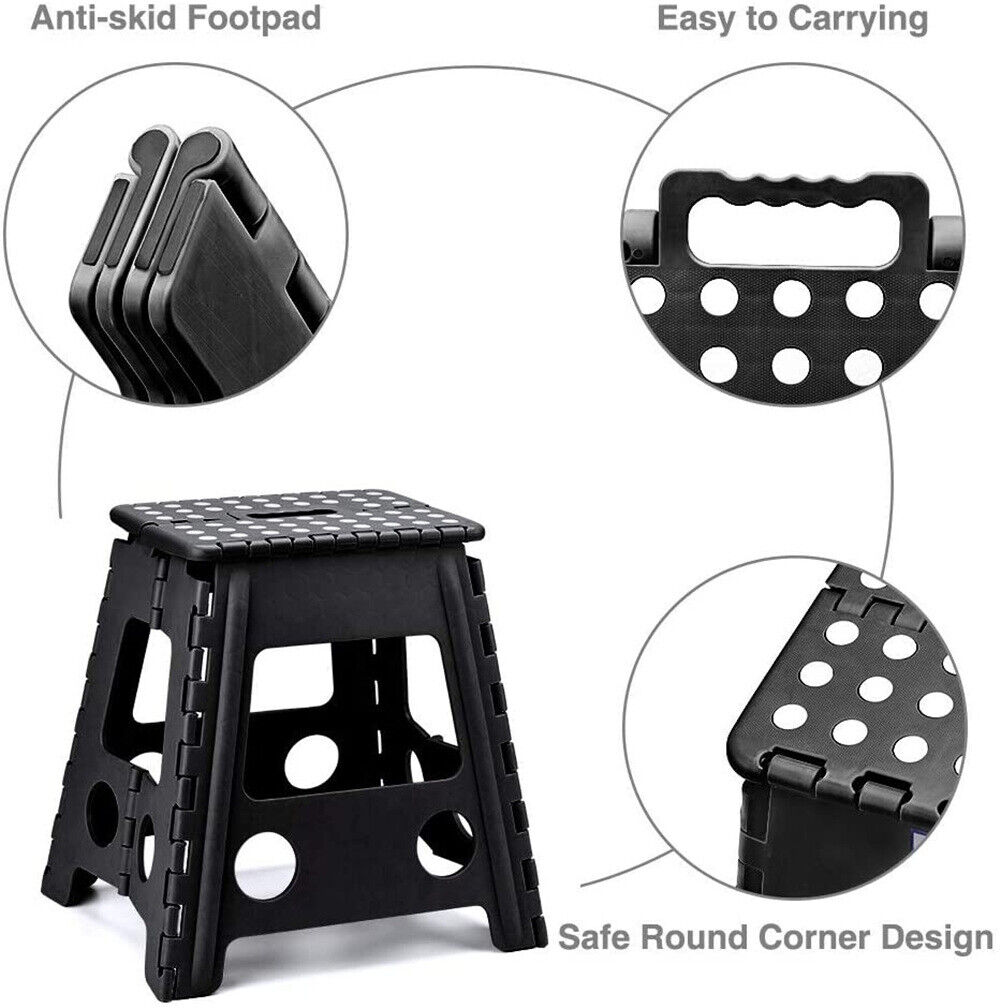 BEST QUALITY AND SAFETY DESIGN: Our super strong sturdy folding step stool are made of heavy duty materials for long lasting durability. On the surface of the folding step stool have the skid resistant top which will give you amazing comfort and safety for everyone, including kids and adults.