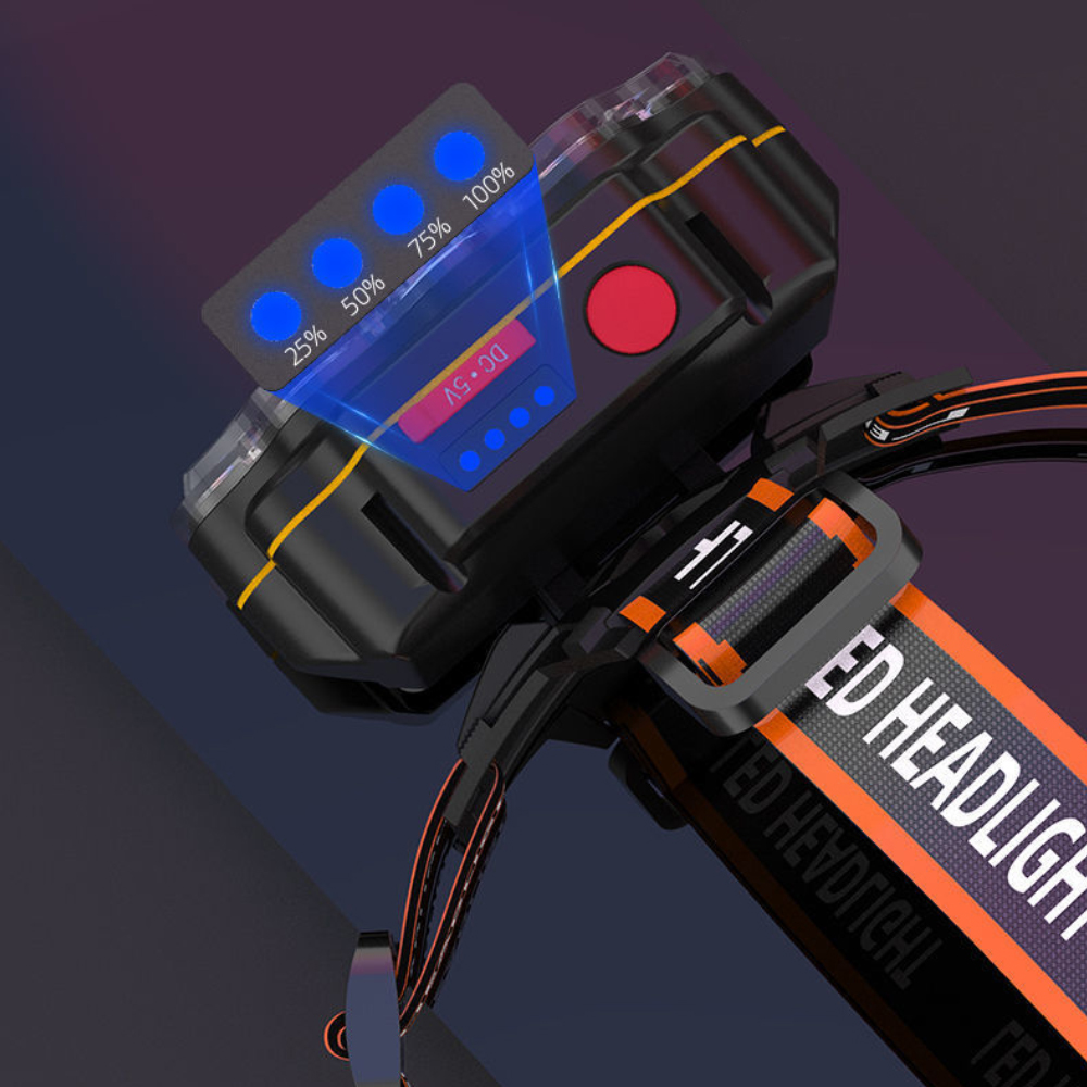 This hands-free headlamp is made of aluminium alloy and ABS plastic. It has an IPX4 waterproof rating, which makes it works normally even on rainy days. High-quality materials make it last longer and can withstand the test of various conditions.